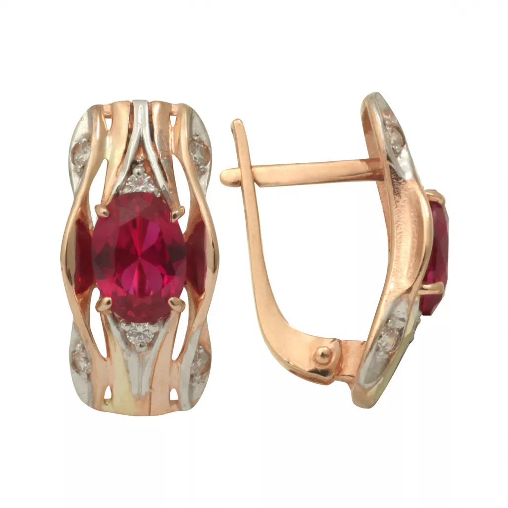 Серьги с корундом и фианитом из золота Артикул: 114285 кор