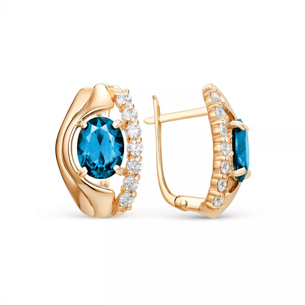 - Серьги с топазом и фианитом из золота