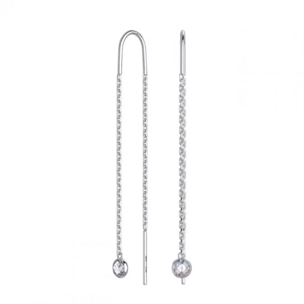- Серьги-продевки с фианитом из серебра