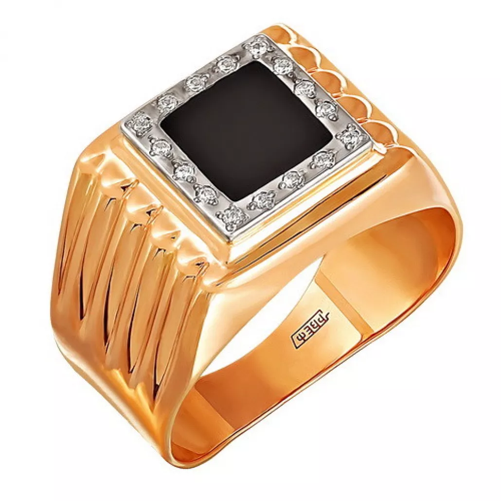 Кольцо-печатка с фианитом и эмалью из золота Артикул: 1117017 1 1 13