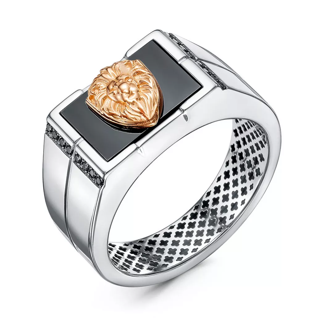 Кольцо-печатка с фианитом и ониксом из золота