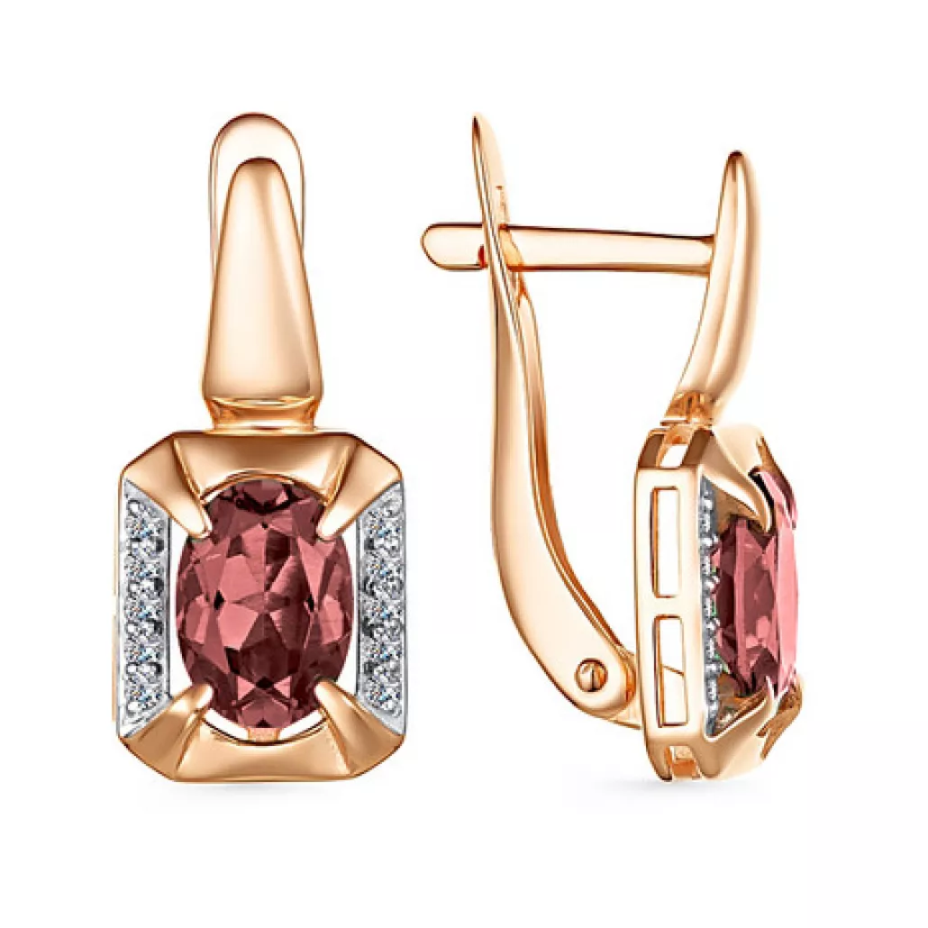 Серьги с фианитом и гранатом из золота