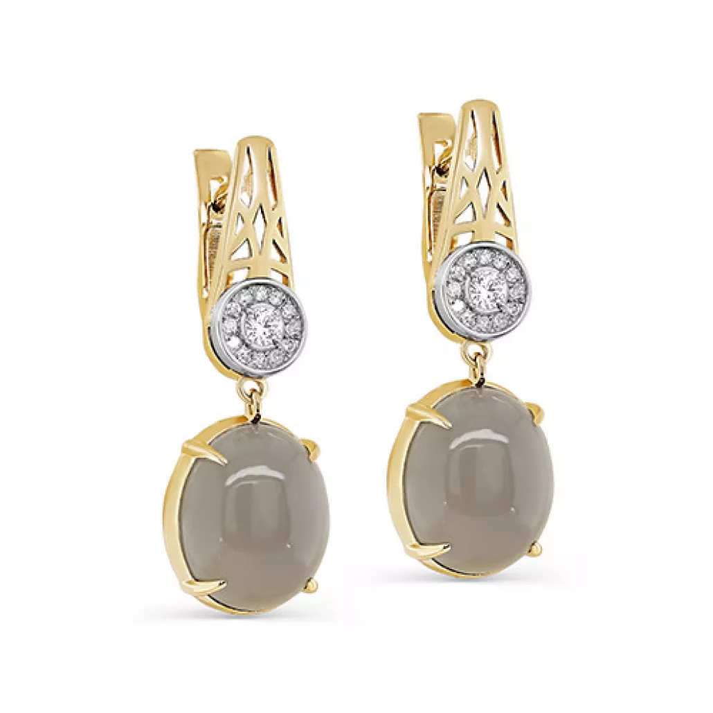 Серьги с бриллиантами с лунным камнем из золота Артикул: 12-21582-8700
