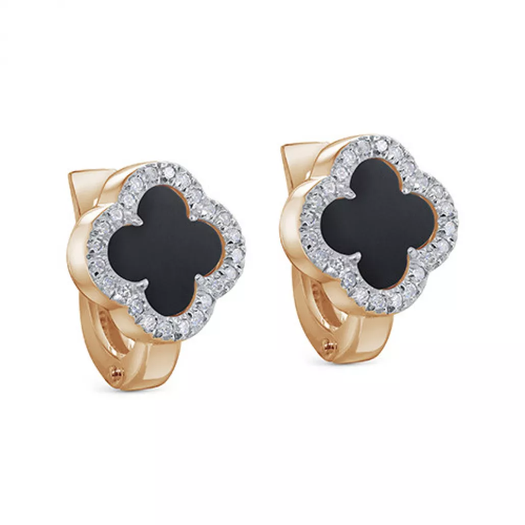 Серьги с бриллиантами с ониксом из золота