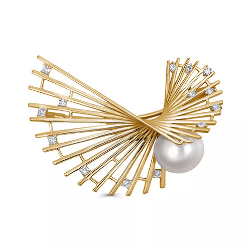 Брошь с бриллиантами с жемчугом из золота Артикул: 5-0064-1500