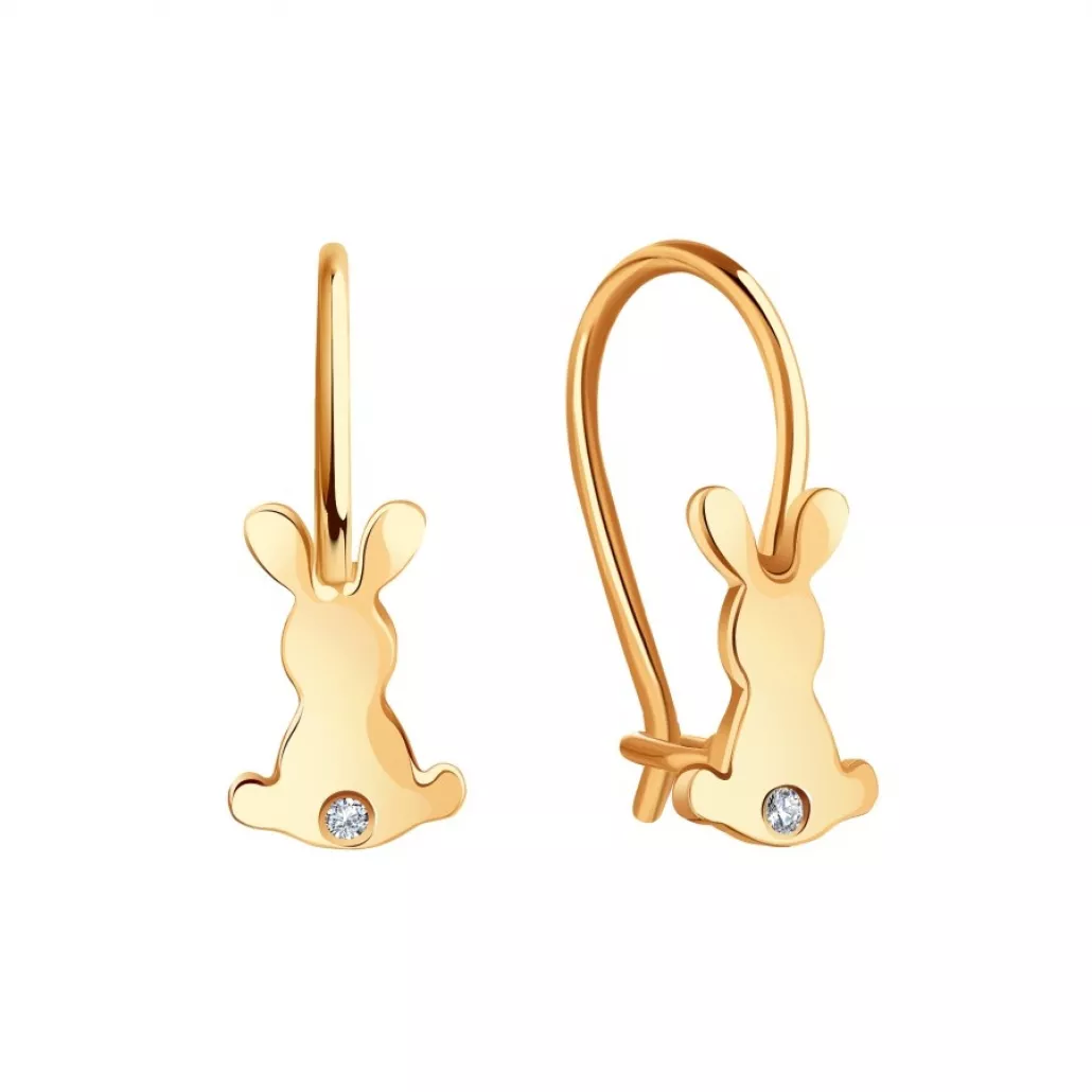 Серьги детские с фианитом из золота Артикул: Т10202В278