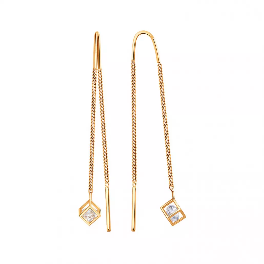 Серьги-продевки с фианитом из золота