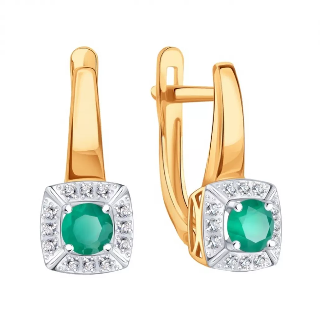 Серьги с фианитом и агатом из золота Артикул: Т14702В942