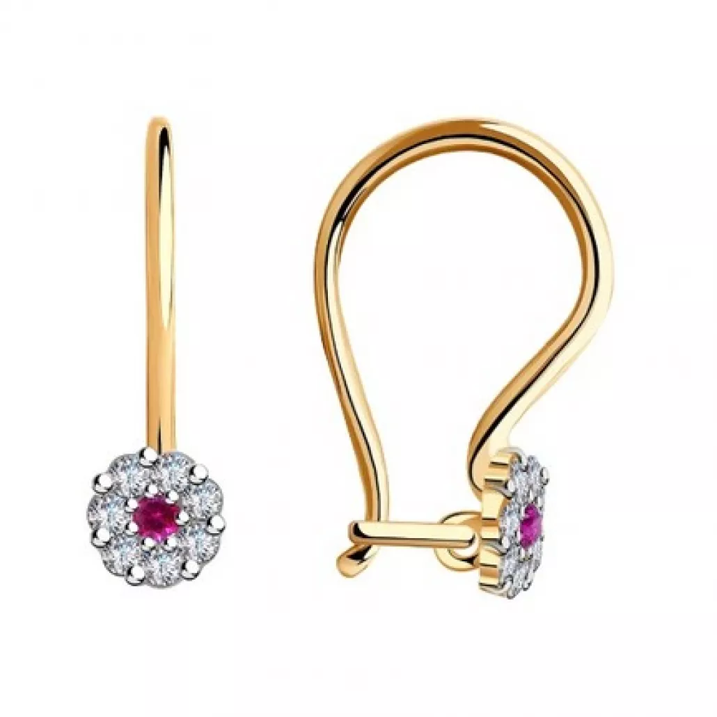 Серьги детские с фианитом из золота
