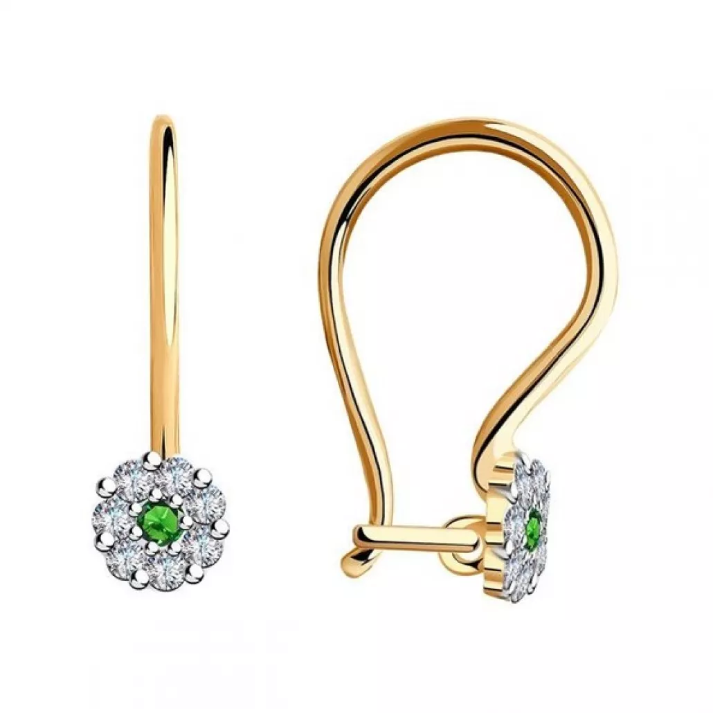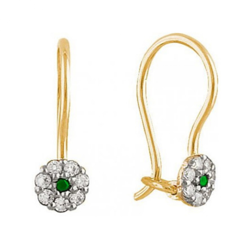 Серьги детские с фианитом из золота